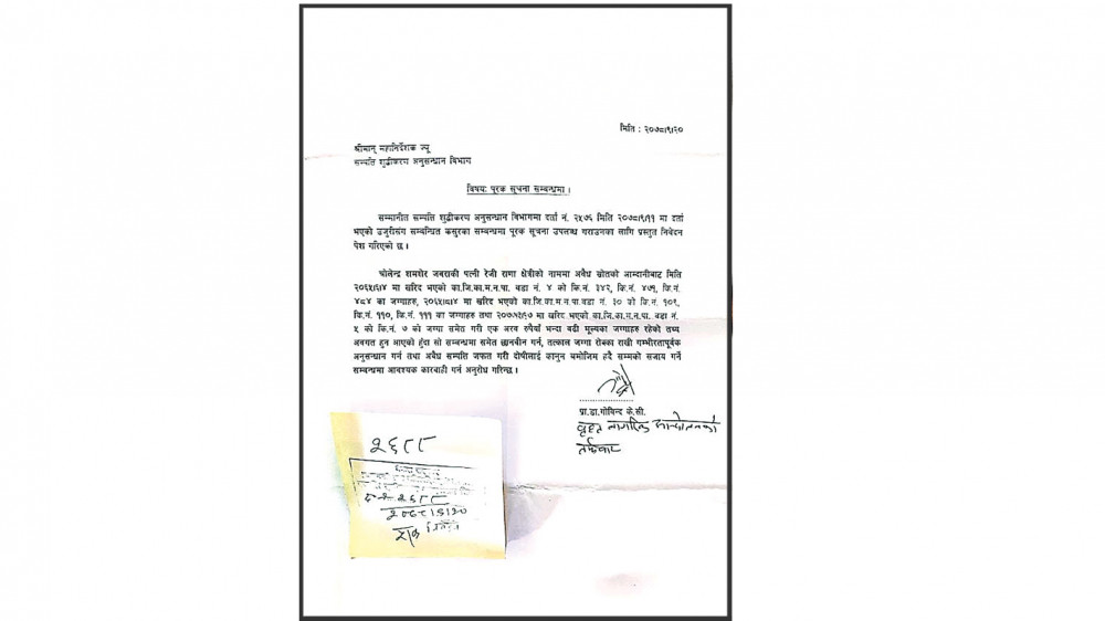 बृहत् नागरिक आन्दोलनका तर्फबाट डा केसीले हिजो (मंगलबार) पूरक निवेदन दिएका हुन् । जसमा उनले प्रधानन्यायाधीश जबराकी पत्नी रेजी राणा क्षत्रीका नाममा अवैध स्रोतबाट आर्जित एक अर्ब बढीको सम्पत्ति रहेको दाबी गर्दै छानबिन गर्न विभागसँग आग्रह गरेका छन् ।