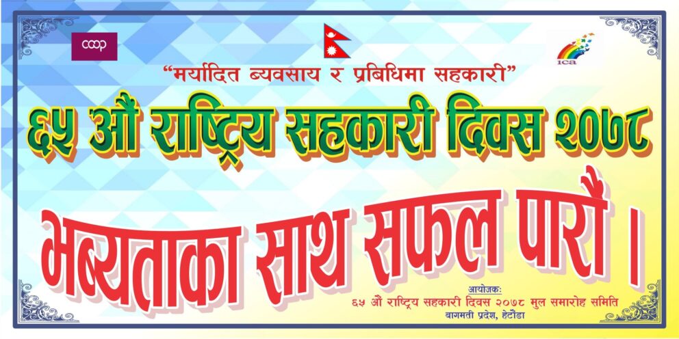 बागमती प्रदेश स्तरिय ६५ औं राष्ट्रिय सहकारी दिवस प्रदेश राजधानी हेटौंडामा बिविध कार्यक्रम सहित मनाउनको लागि सम्पुर्ण तयारी पुरा भएको छ ।