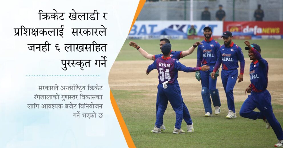 क्रिकेट खेलाडी र प्रशिक्षकलाई सरकारले जनही ६ लाखसहित पुरस्कृत गर्ने