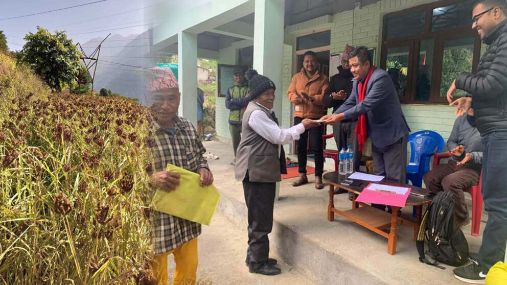 भीमफेदी गाउँपालिकाकाे ३ नम्बर वडामा कोदो उत्पादन गर्ने कृषकलाई नगद अनुदान वितरण