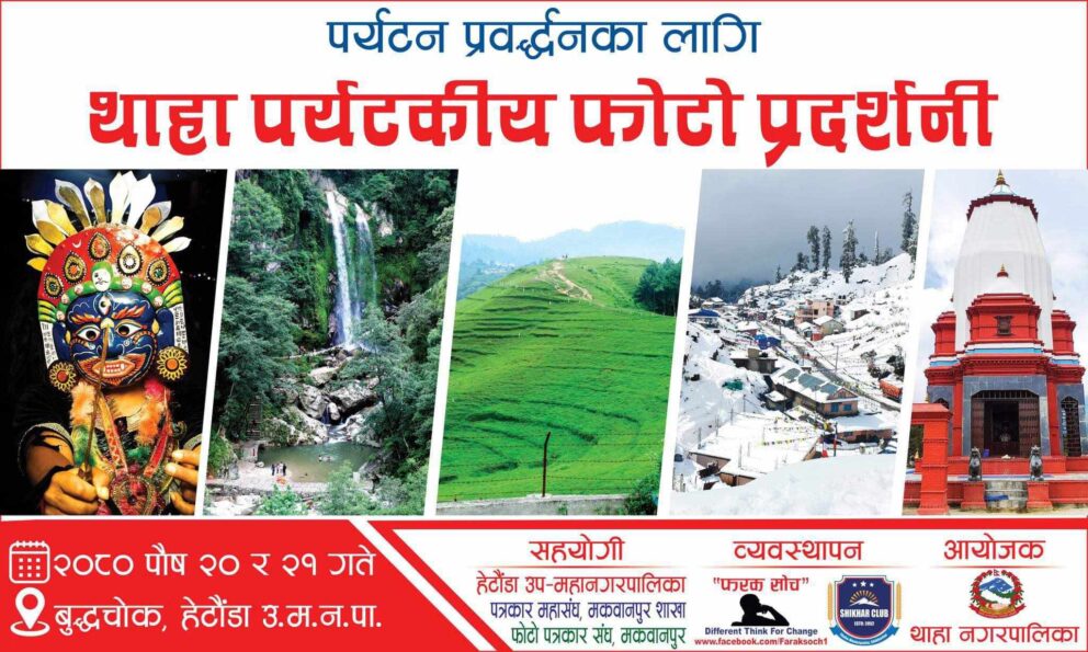 हेटौंडा / थाहा नगरको पर्यटन प्रबर्द्धनका लागि हेटौडामा फोटो प्रदर्शनी हुने भएको छ ।