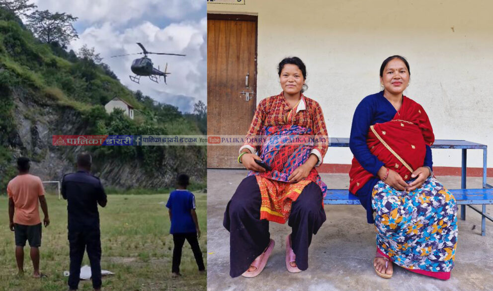 सिस्नेरीका २ गर्भवती महिलालाई हेलिकप्टर मार्फत थापाथली लगियो