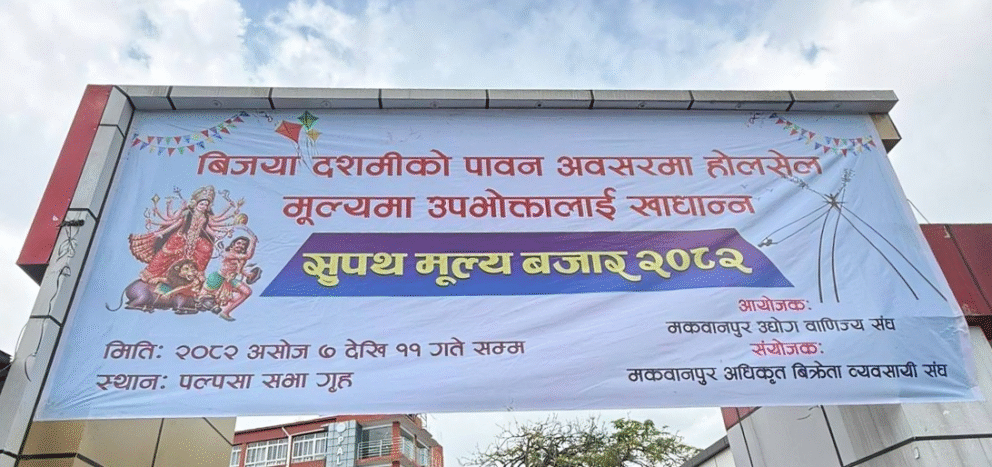 हेटौंडा / नेपालीहरूको महान चाड दशैंलाई मध्यनजर गर्दै मकवानपुर उद्योग वाणिज्य संघको पहलमा मंगलबारदेखि सुपथ मूल्यको खाद्यान्न बजार सञ्चालनमा आएको छ।