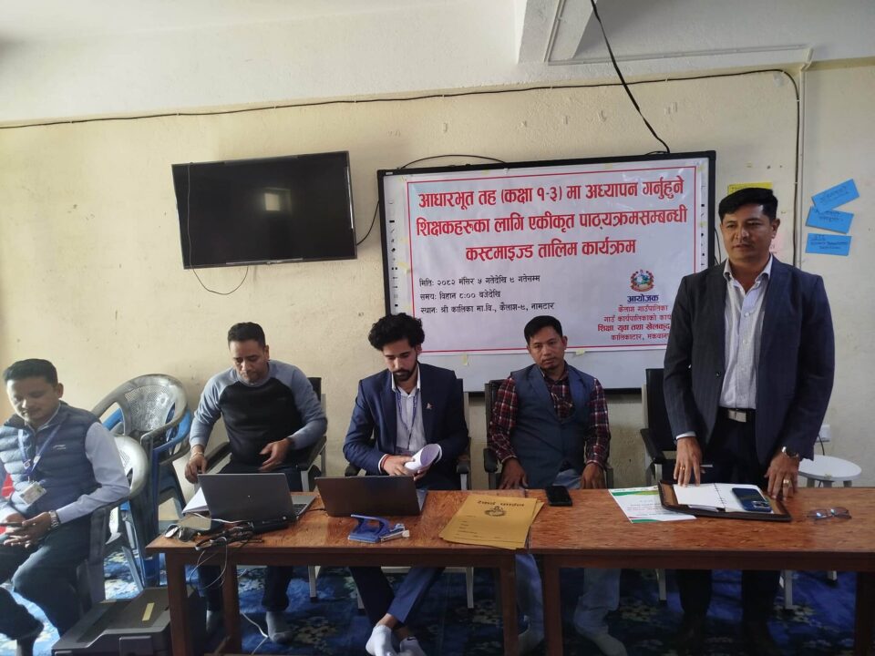 मकवानपुरको कैलाश गाउँपालिकाका विशेषगरी कक्षा १ देखि ३ सम्म अध्यापन गराउने शिक्षकलाई एकीकृत पाठ्यक्रम सम्बन्धी कस्टमाइज्ड तालिम सुरु भएको छ। पाँच दिनसम्म सञ्चालन हुने तालिम शुक्रबारबाट सुरु भएको हो।