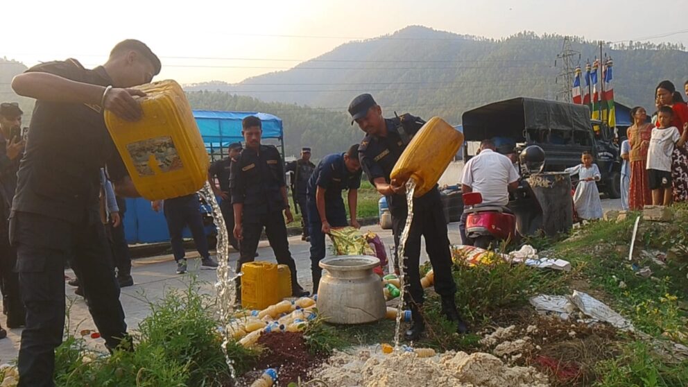 प्रहरीका अनुसार उक्त स्थानमा अवैध रूपमा ठूलो मात्रामा घरेलु मदिरा उत्पादन भइरहेको पाइएको छ।