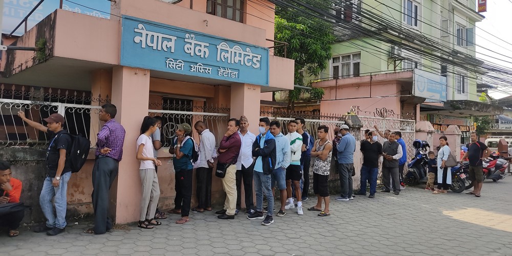 हेटौंडामा नयाँ नोट साट्न बिहान सवेरैबाट लाइनमा