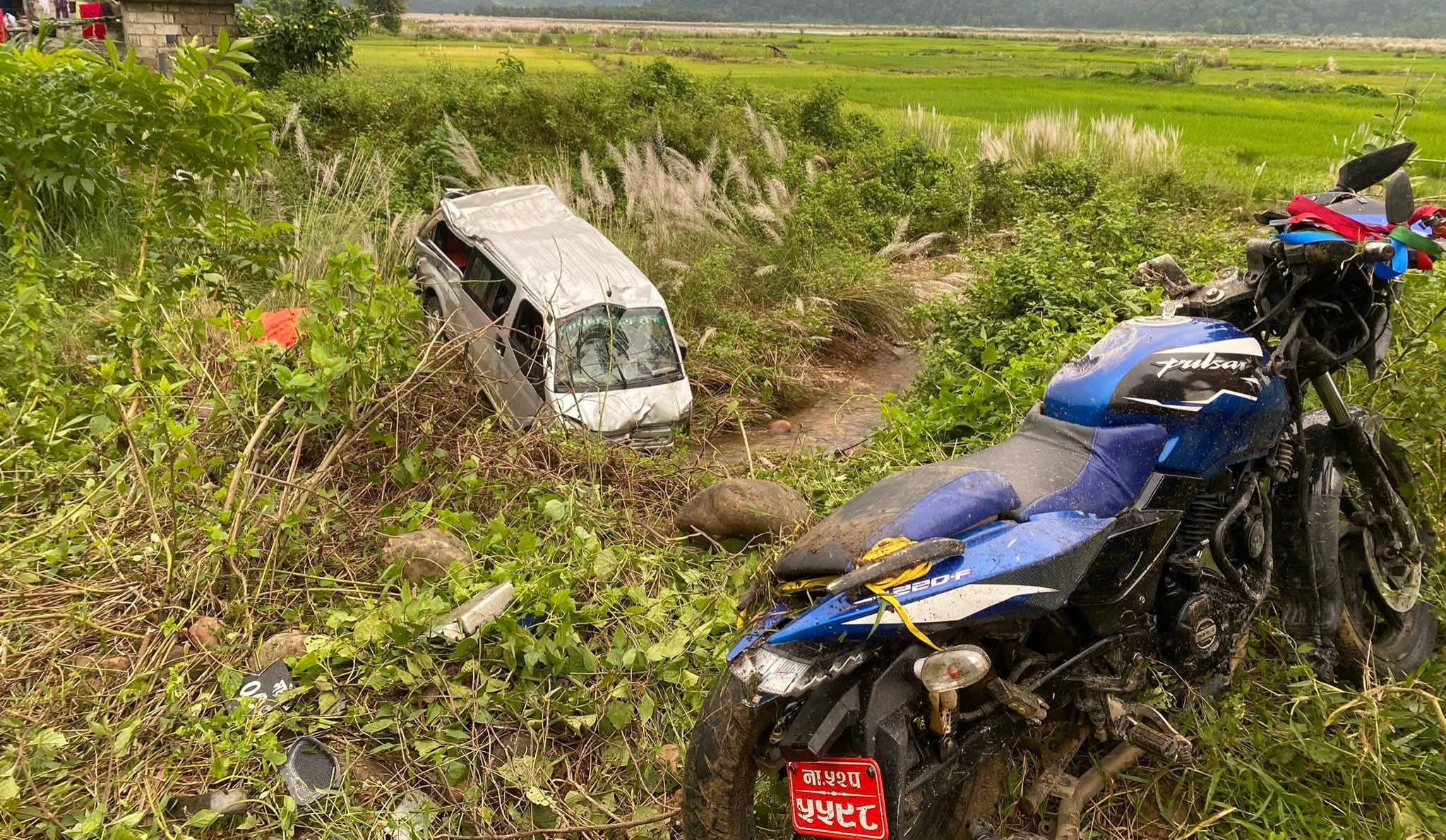 काठमाडौँ जाँदै गरेको भ्यान बागमतीमा मोटरसाइकलसँग ठोक्किँदा दुर्घटना