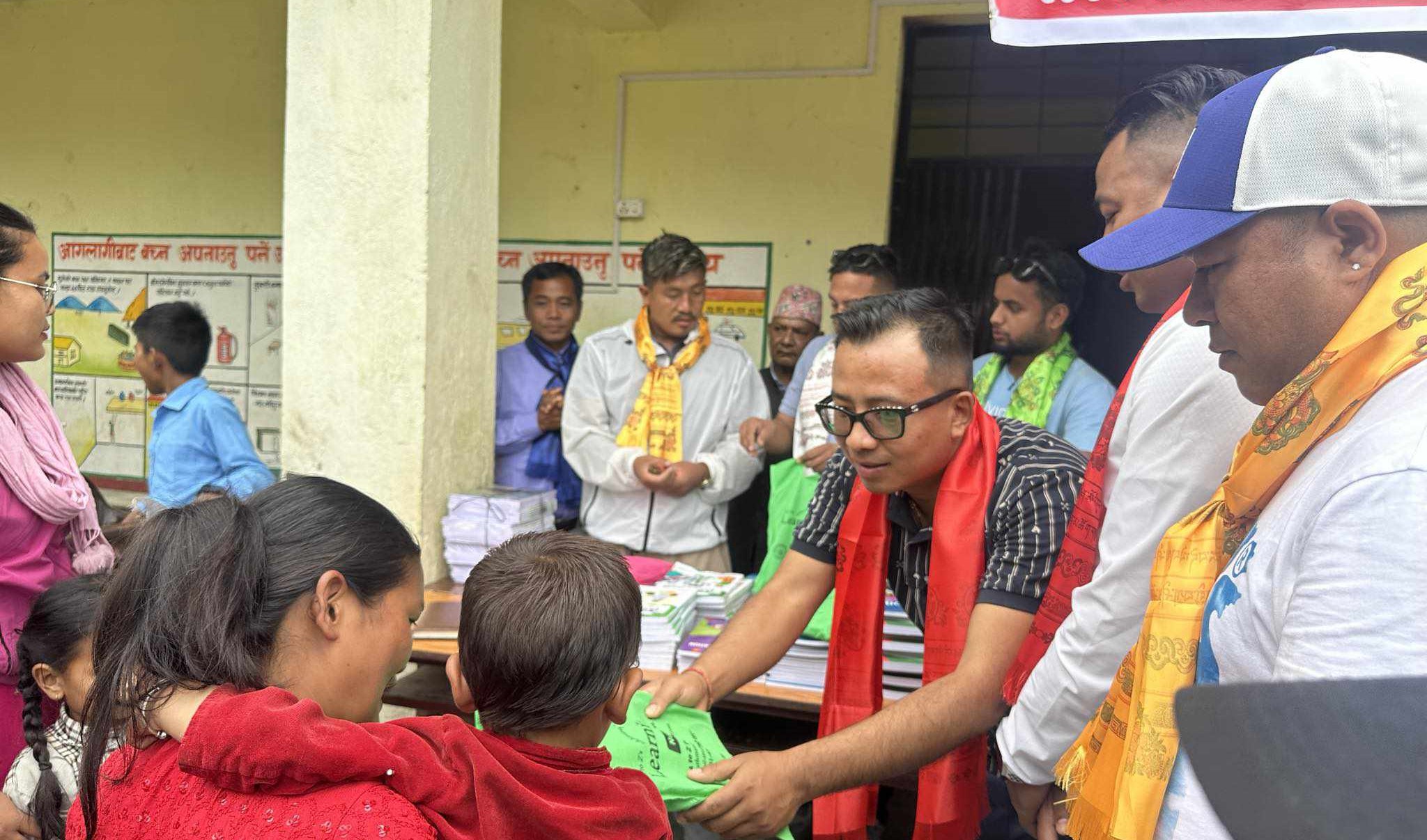 राष्ट्रिय युवा संघ नेपाल भीमफेदीद्वारा बाराही आधारभूत विद्यालयमा शैक्षिक सामग्री वितरण